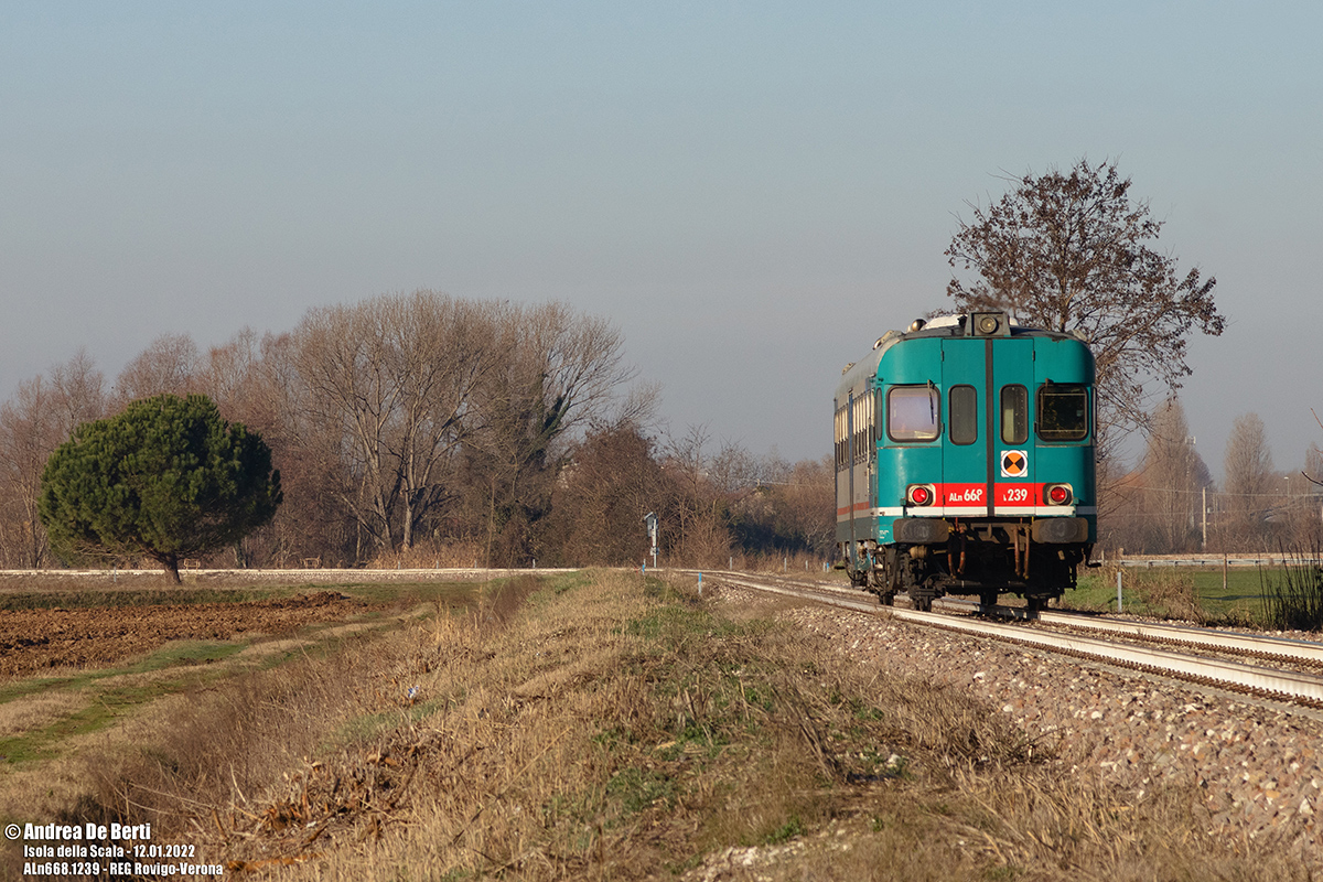 | Un regionale pomeridiano da Rovigo a Verona transita nella campagna nei pressi di Tarmassia. 08/02/2022 |